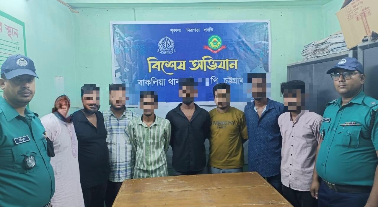 অভিযানে এজাহারনামীয় আসামী ১। সবুজ ইসলাম মিরাজ (২৪), পিতা-মৃত মোঃ বাদল ইসলাম, মাতা-ফাতেমা বেগম, সাং-ছনহরা, কামাল চেয়ারম্যান বাড়ী, থানা-পটিয়া, জেলা-চট্টগ্রাম, বর্তমান-০১ শাহ আমানত হাউজিং সোসাইটি, গুলজার টাওয়ার, ৯ম তলা,থানা-বাকলিয়া,জেলা-চট্টগ্রা ম, বর্তমান-০২ সৈয়দশাহ রোড, আব্দুল আজিজ হাউজিং সোসাইটি, থানা-বাকলিয়া,জেলা-চট্টগ্রাম, ২। মোঃ সাইদুল ইসলাম (২০), পিতা-মোঃ বাদশা, মাতা-হাজেরা বেগম, সাং-কুড়েরখাল, খানবাড়ী, থানা-মুরাদনগর, জেলা-কুমিল্লা, বর্তমানে-সৈয়দশাহ রোড, এসএম টাওয়ারের পার্শ্বে, থানা-বাকলিয়া,জেলা-চট্টগ্রাম, ৩। এমরান হোসেন সাগর (৩০), পিতা-আহম্মদ ছফা, সাং-দক্ষিণ ছাদেক নগর, সমিতিরহাট, থানা-ফটিকছড়ি, জেলা-চট্টগ্রাম, ৪। জিহান (২২), পিতা-জামাল উদ্দিন,মাতা-টিপু আক্তার, সাং-তানরাইজহাটা, খানখানাবাদ, থানা-বাঁশখালী, জেলা-চট্টগ্রাম, বর্তমানে-রসুলবাগ আবাসিক এলাকা, থানা-বাকলিয়া, জেলা-চট্টগ্রাম, ৫। মোঃ তামজিদুল ইসলাম প্রঃ সাজু (৪৭), পিতা-মৃত নুরুল ইসলাম, মাতা-মর্জিনা বেগম, সাং-ধাওয়া চাঙ্গুইর, ওয়ার্ড নং-৪, থানা-সদর, জেলা-বগুড়া, বর্তমানে-রসুলবাগ আবাসিক এলাকা, থানা-বাকলিয়া,জেলা-চট্টগ্রাম, ৬। মোঃ আরাফাত (২২), পিতা-রফিক উদ্দিন, মাতা-আম্বিয়া বেগম, সাং-মরফলা বাজার, রুস্তমপাড়া, নলুয়া ইউপি, ৩নং ওয়ার্ড, থানা-সাতকানিয়া, জেলা-চট্টগ্রাম, বর্তমান সাং-কল্পলোক আবাসিক, খালপাড়, নানার বিল্ডিং, নিচতলা, থানা-বাকলিয়া,জেলা-চট্টগ্রাম, তদন্তে প্রাপ্ত আসামী ৭। মোঃ ওসমান (২৮) পিতা-মৃত আব্দুর রাজ্জাক, মাতা- রহিমা বেগম, সাং- পাঁছগাছি, থানা- সদর, জেলা- ফেনী, বর্তমান- বিশ্ব মসজিদ আক্তার সওদাগর কলোনী, থানা- বাকলিয়া, জেলা- চট্টগ্রাম, ৮। দিদারুল আলম রাসেল, পিতা-মৃত নুরুল আমীন, মাতা- দিলোয়ারা বেগম, সাং- খরনখাইন, থানা-পটিয়া, জেলা- চট্টগ্রাম, বর্তমান- শীতলঝর্না আবাসিক, শেষ মাথা বিল্ডিং, থানা-বায়েজিদ বোস্তামী থানা, জেলা- চট্টগ্রামদেরকে গ্রেফতার করেন। গ্রেফতার অভিযান অব্যাহত রয়েছে।