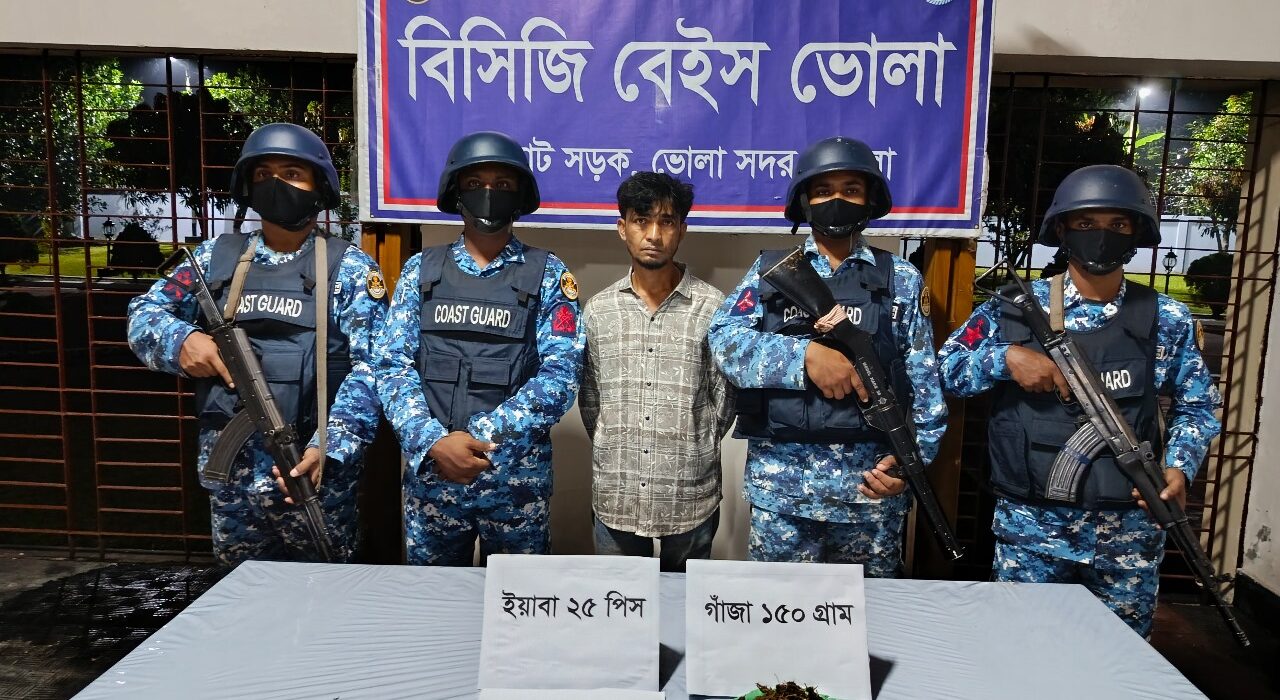 ভোলায় কোস্ট গার্ডের অভিযানে ইয়াবা ও গাঁজাসহ মাদক কারবারি আটক