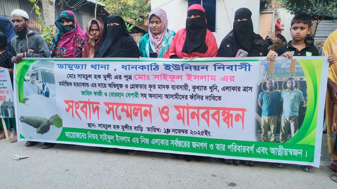 মাদারীপুরে হত্যা মামলার আসামীদের ফাঁসির দাবিতে মানববন্ধন ও বিক্ষোভ