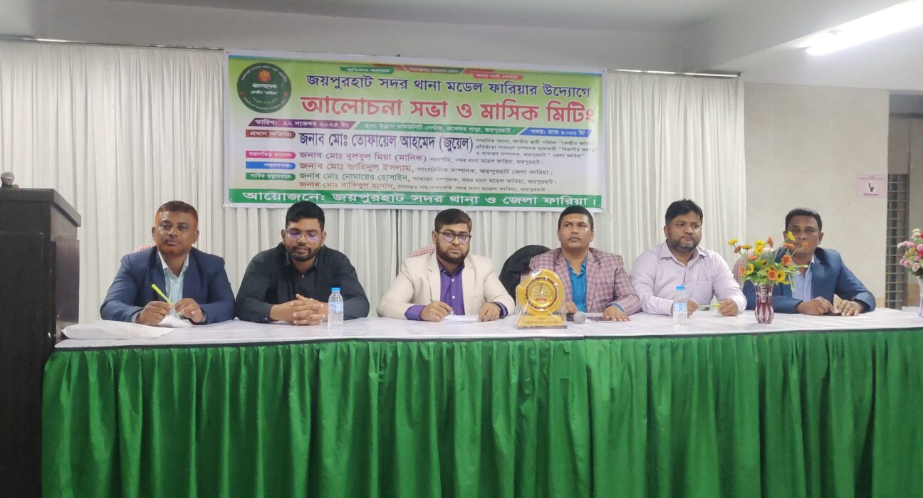 এ সময় জয়পুরহাট সদর ফারিয়ার সভাপতি জনাব মোঃ বুলবুল মিয়া মানিক এর সভাপতিত্বে  বিশেষ অতিথি হিসেবে বক্তব্য দেন, জয়পুরহাট জেলা ফারিয়ার সাংগঠনিক সম্পাদক মোঃ জাহিদুল ইসলাম।