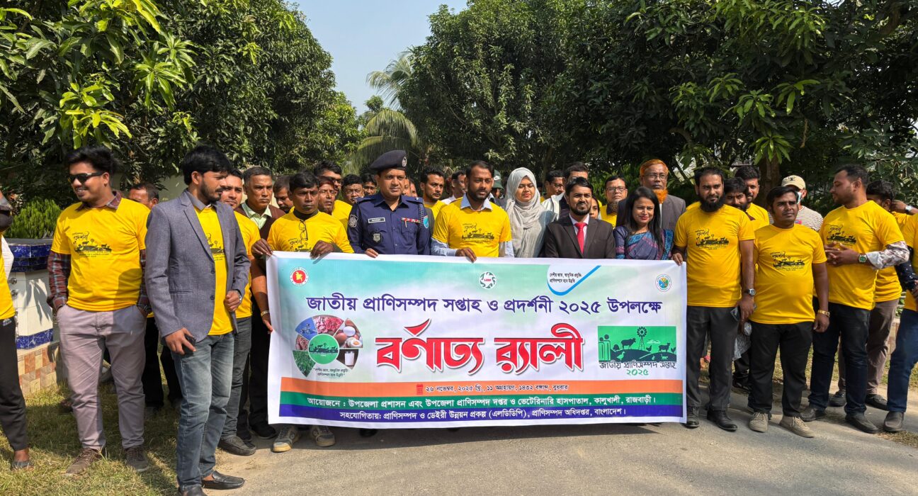 “দেশীয় জাত, আধুনিক প্রযুক্তি—প্রাণিসম্পদ হবে উন্নতি” এই প্রতিপাদ্যকে সামনে রেখে উৎসবমুখর পরিবেশে রাজবাড়ীর কালুখালীতে শুরু হয়েছে জাতীয় প্রাণিসম্পদ সপ্তাহ ও প্রাণিসম্পদ প্রদর্শনী ২০২৫।