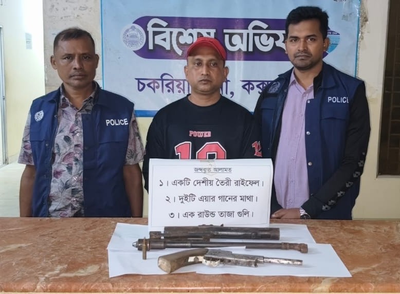 চকরিয়ার বদরখালী থেকে অস্ত্রধারী গ্রেফতার, দেশীয় তৈরি রাইফেল ও গুলি উদ্ধার