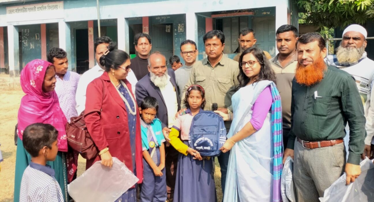 রবিবার (৩০ নভেম্বর) সকাল ১০টায় উপজেলার ৪নং হরিণবাড়ীয়া সরকারি প্রাথমিক বিদ্যালয়ে ২০২৫-২০২৬ অর্থ বছরে উপজেলা প্রশাসনের অর্থায়নে ব্যাগ বিতরণ কার্যক্রম অনুষ্ঠিত হয়।