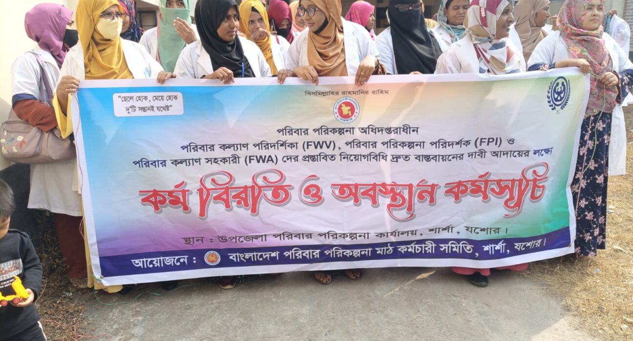 শার্শায় পরিবার পরিকল্পনা মাঠ কর্মীদের কর্ম বিরতি ও অবস্থান কর্মসূচি পালন
