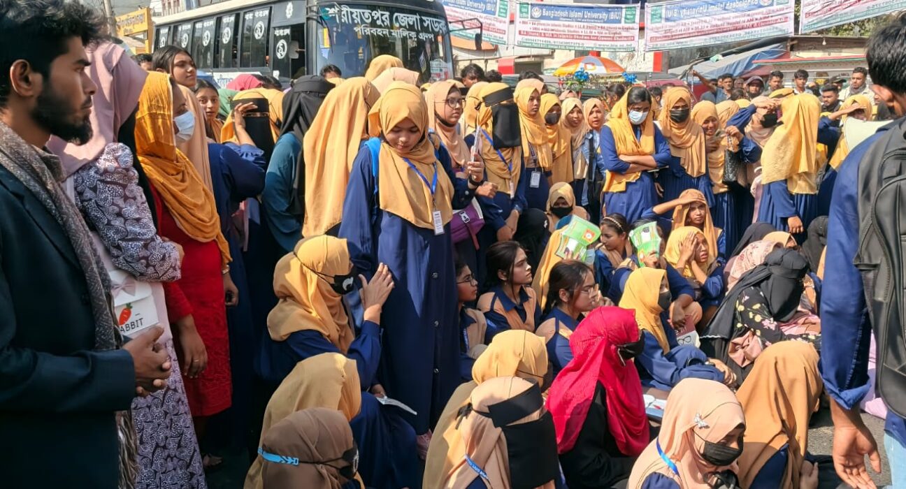 মাদারীপুরে কলেজ শিক্ষার্থীর ওপর হামলাকারীদের গ্রেপ্তার দাবিতে মহাসড়ক অবরোধ