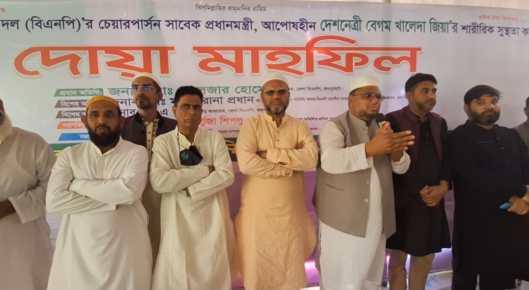সাবেক প্রধানমন্ত্রী ও বিএনপির চেয়ারপার্সন দেশনেত্রী বেগম খালেদা জিয়ার সুস্থতা কামনায় জয়পুরহাটে সম্মিলিত শ্রমিক ফেডারেশনের আয়োজনে দোয়া মাহফিল অনুষ্ঠিত হয়েছে।
