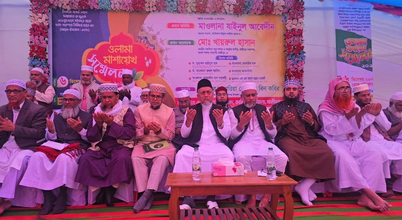 তোমরা সবাই মিলে আল্লাহর রজ্জুকে ঐক্যবদ্ধভাবে আঁকড়ে ধরো এবং পরস্পর বিচ্ছিন্ন হয়ো না’ কোরআনের এই বাণীকে সামনে রেখে কালীগঞ্জ শ্রমিক কলেজ মাঠে শনিবার (০৬ ডিসেম্বর) উপজেলা ওলামা মাশায়েখ পরিষদের উদ্যেগে ওলামা মায়েখ সম্মেলন অনুষ্ঠিত হয়। মাওলানা জাকারিয়া হোসাইন বিন কবিরের সভাপতিত্বে অনুষ্ঠান সঞ্চালনা করেন মাওলানা শিহাব উদ্দিন ও মুফতি আলী আহসান মুজাহিদ । অনুষ্ঠানে প্রধান অতিথি হিসাবে বক্তব্য রাখেন, তামিরুল মিল্লাত কামিল মাদরাসার সাবেক অধ্যক্ষ মাওলানা যাইনুল আবেদীন । প্রধান আলোচক হিসাবে অনুষ্ঠানে বক্তব্য রাখেন গাজীপুর-৫ আসনের জামায়াত মনোনীত এমপি পদপ্রার্থী বাংলাদেশ জামায়াতে ইসলামীর কেন্দ্রীয় মজলিসে শুরা সদস্য ও মহানগর জামায়াতের নায়েবে আমীর জননেতা মো খায়রুল হাসান।