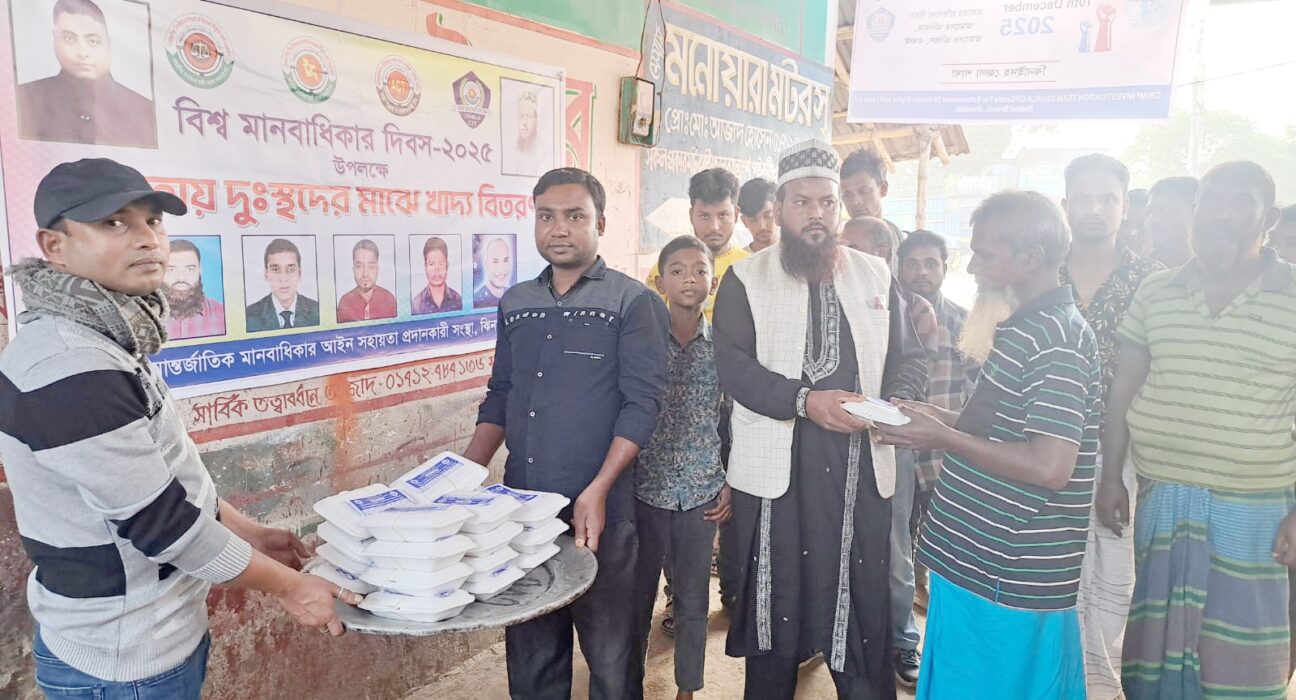 ঝিনাইদহ কালীগঞ্জে আন্তর্জাতিক মানবাধিকার আইন সহায়তা প্রদানকারী সংস্থার ঝিনাইদহ জেলা সভাপতি মোঃ হামিদুজ্জামান জলিলের সভাপতিত্বে অসহায় দুস্থদের মাঝে খাবার বিতরণের মাধ্যমে মানবাধিকার দিবস পালিত হয়।প্রতিবছর ১০ ডিসেম্বর বিশ্বজুড়ে পালিত হয় আন্তর্জাতিক মানবাধিকার দিবস। ১৯৪৮ সালের এ দিনে জাতিসংঘের সাধারণ পরিষদ The Universal Declaration of Human Rights (UDHR) গৃহীত করে, যা ৩০টি অনুচ্ছেদের মাধ্যমে মানুষের মৌলিক অধিকারসমূহ সুরক্ষার ঘোষণা দেয়। আজ ৭৭ বছরব ধরে মানবাধিকার লঙ্ঘনের ঘটনা বিশ্বজুড়ে উল্লেখ জনকভাবে বিদ্যমান। ধর্মীয় দৃষ্টিতে মানবাধিকার কোনো নতুন ধারণা নয়; বরং প্রাচীন ধর্মগ্রন্থগুলোতেই মানুষের মর্যাদা, স্বাধীনতা, ন্যায়বিচার ও সাম্যের শক্ত ভিত্তি স্থাপিত হয়েছে।