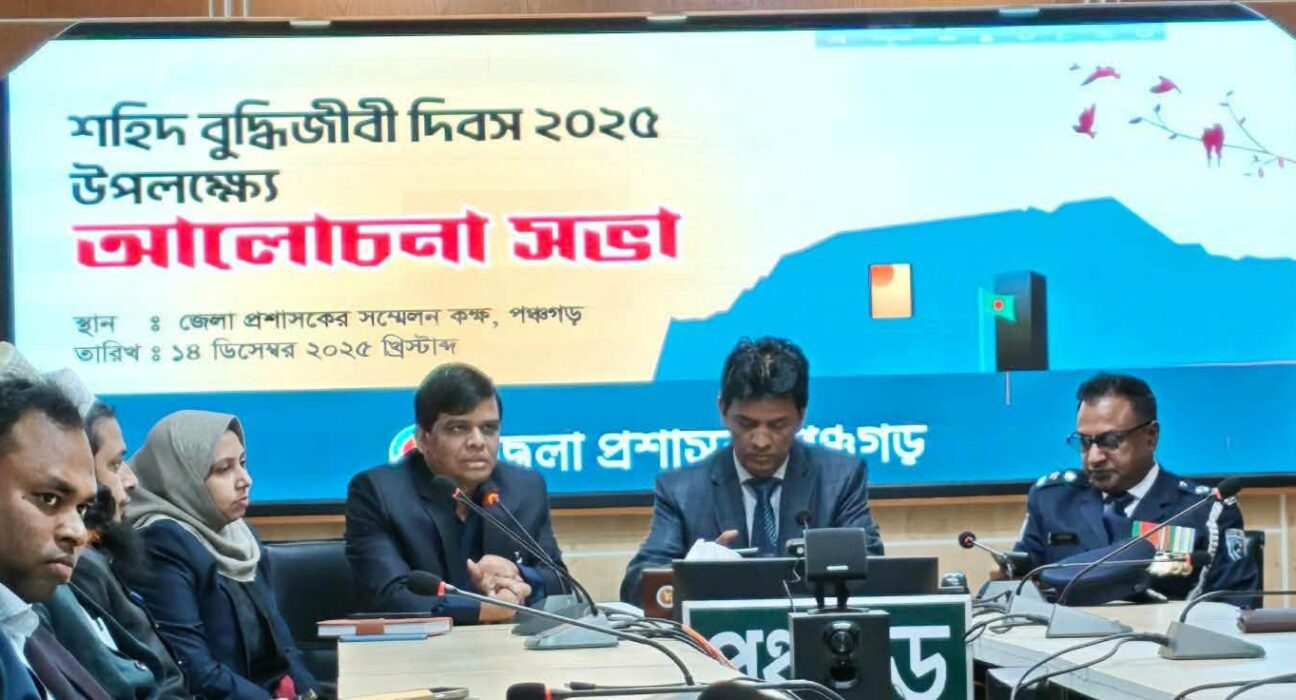 পঞ্চগড়ে যথাযোগ্য মর্যাদায় শহীদ বুদ্ধিজীবী দিবস পালিত হয়েছে। রোববার (১৪ ডিসেম্বর) সকালে দিবসটি উপলক্ষ্যে পঞ্চগড় জেলা পুলিশ সুপারের কার্যালয়ের সামনে মুক্তিযোদ্ধা স্মৃতি স্তম্ভে পুস্পস্তবক অর্পন করা হয়। পরে পঞ্চগড়ের জেলা পরিষদ চত্বরে অবস্থিত শহীদ বুদ্ধিজীবী বধ্যভূমিতে পুস্পস্তবক অর্পন করা হয়।