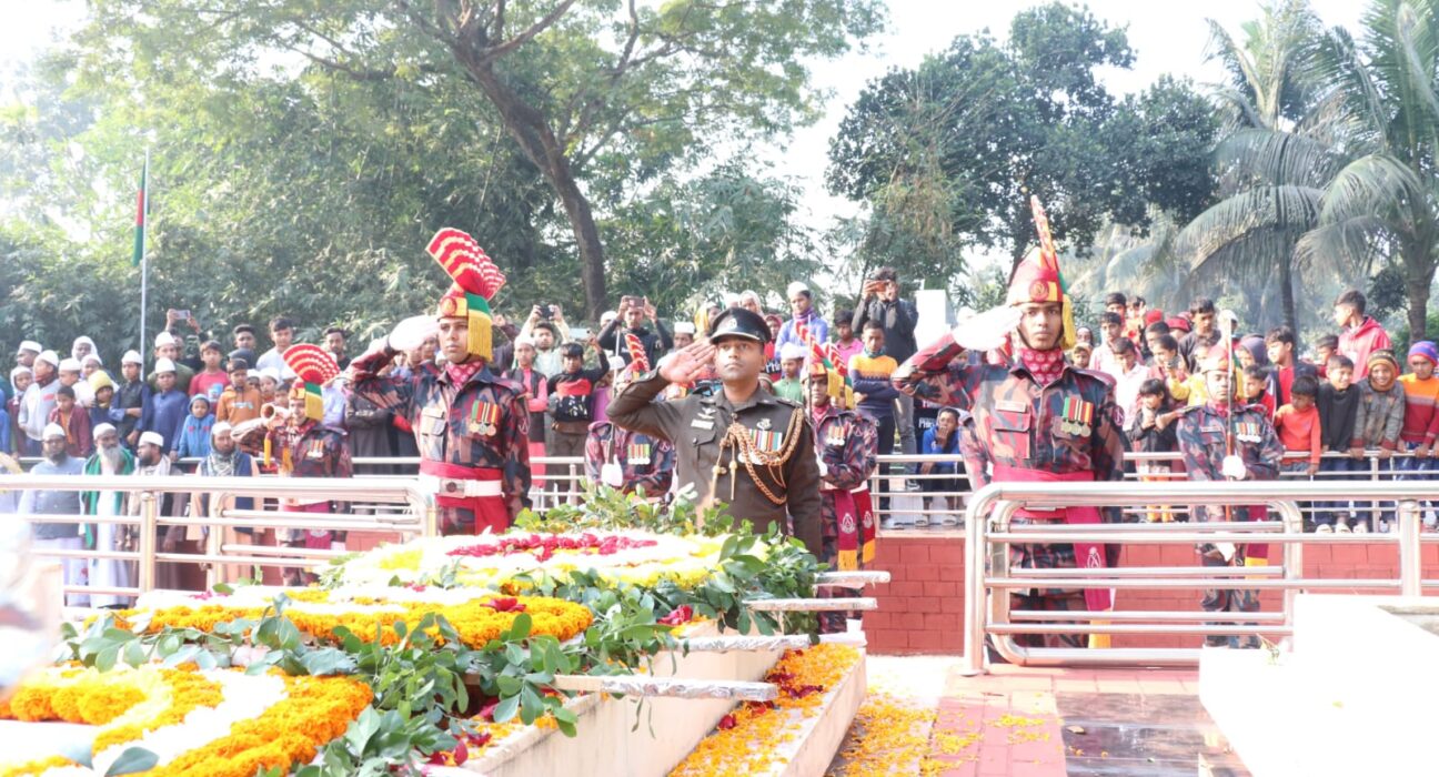 মহান বিজয় দিবস উপলক্ষে যথাযোগ্য মর্যাদায় বীরশ্রেষ্ঠ শহীদ ল্যান্স নায়েক নূর মোহাম্মদ শেখ এর সমাধিতে পুষ্পস্তবক অর্পন করলো ৪৯ বিজিবি।