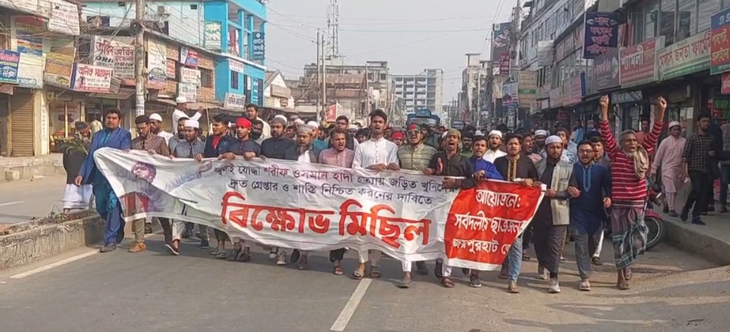 হাদীর মৃত্যুতে জয়পুরহাটে বিক্ষোভ মিছিল