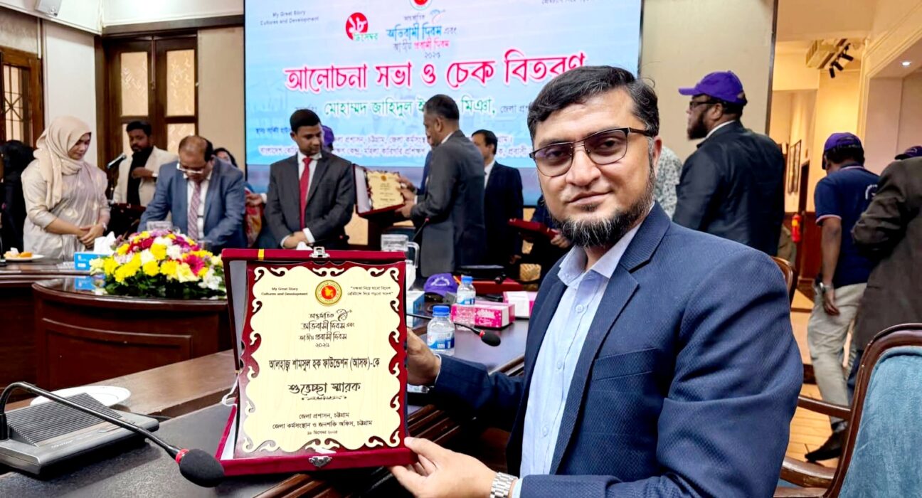 বৃহস্পতিবার (১৮ ডিসেম্বর) সকালে অভিবাসী এবং প্রবাসী দিবস উপলক্ষে সার্কিট হাউসে চট্টগ্রাম জেলা প্রশাসন আয়োজিত আলোচনা সভা ও চেক বিতরণ অনুষ্ঠানে এই সম্মাননা প্রদান করা হয়েছে।