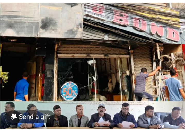 ঝিনাইদহে বন্ড শোরুমে অগ্নিসংযোগের পর সংবাদ সম্মেলন