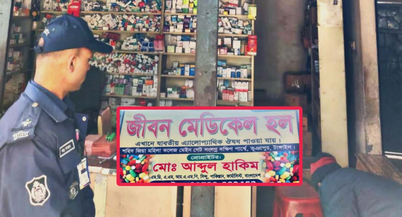 জানা যায়, ভূঞাপুর পৌর এলাকার শহীদ জিয়া মহিলা কলেজের সামনে অবস্থিত একটি ওষুধের দোকানে আব্দুল হাকিম নামের এক ব্যক্তি দীর্ঘদিন ধরে নিজেকে ডাক্তার পরিচয় দিয়ে রোগীদের প্রেসক্রিপশন লিখে চিকিৎসা দিয়ে আসছিলেন। অথচ তিনি পেশায় একজন ফার্মাসিস্ট। নিয়ম অনুযায়ী তার শুধু ওষুধ বিক্রির অনুমতি থাকলেও তিনি নিয়মিত সব ধরনের রোগের চিকিৎসা ও প্রেসক্রিপশন প্রদান করতেন।