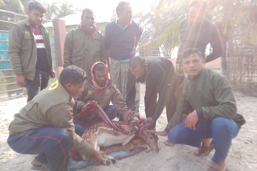 বনবিভাগ ও ভিটিআরটি সুত্রে প্রকাশ বৃহস্পতিবার(২৫ ডিসেম্বর) সকাল ৮টার দিকে সুন্দরবন থেকে খোলপেটুয়া নদী পার হয়ে শ্যামনগর উপজেলার সুন্দরবন সংলগ্ন দ্বীপ ইউনিয়ন গাবুরার দৃষ্টিনন্দন প্রকল্পের নদীর চরে চলে আসে। স্থানীয়রা দেখতে পেয়ে বনবিভাগকে সংবাদ দিলে পরবর্তীতে হরিণটি কৌশলে উদ্ধার করে বনবিভাগ সুন্দরবনের কলাগাছিয়ায় অবমুক্ত করেন।