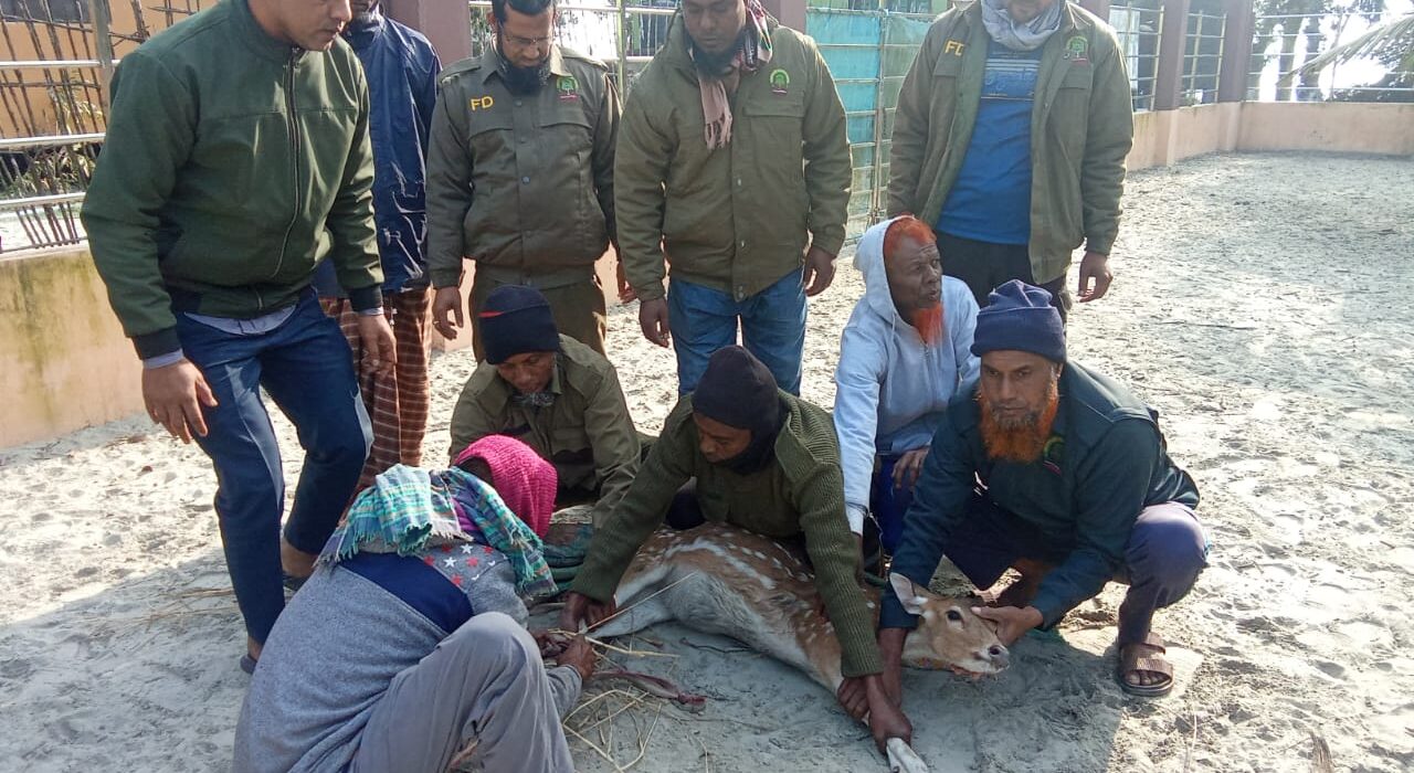 বনবিভাগ সুত্রে প্রকাশ বুধবার(৩১ ডিসেম্বর) সকাল ৭টার দিকে সুন্দরবন থেকে খোলপেটুয়া নদী পার হয়ে শ্যামনগর উপজেলার সুন্দরবন সংলগ্ন দ্বীপ ইউনিয়ন গাবুরার ডুমুরিয়া গ্রামে চলে আসে। স্থানীয়রা দেখতে পেয়ে বনবিভাগকে সংবাদ দিলে পরবর্তীতে হরিণটি কৌশলে উদ্ধার করে বনবিভাগ সুন্দরবনের কলাগাছিয়ায় অবমুক্ত করেন।