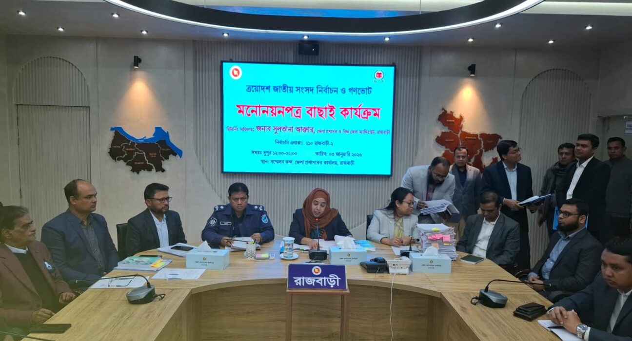 শনিবার (৩ জানুয়ারি) দুপুরে রাজবাড়ী জেলা প্রশাসকের সম্মেলন কক্ষে প্রার্থীদের মনোনয়নপত্র যাচাই-বাছাই শেষে জেলা প্রশাসক ও জেলা রিটার্নিং কর্মকর্তা সুলতানা আক্তার এসব তথ্য জানান।