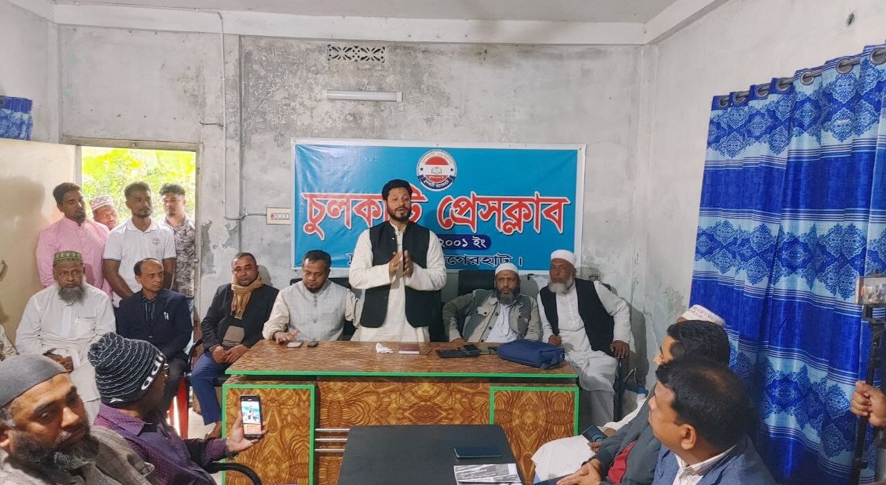 বাগেরহাট-২ আসনের বাংলাদেশ জামায়াত ইসলামীর মনোনীত প্রার্থী শেখ মনজুরুল হক রাহাত চুলকাটি প্রেসক্লাবের সাংবাদিকদের সাথে মতবিনিময় করছেন।