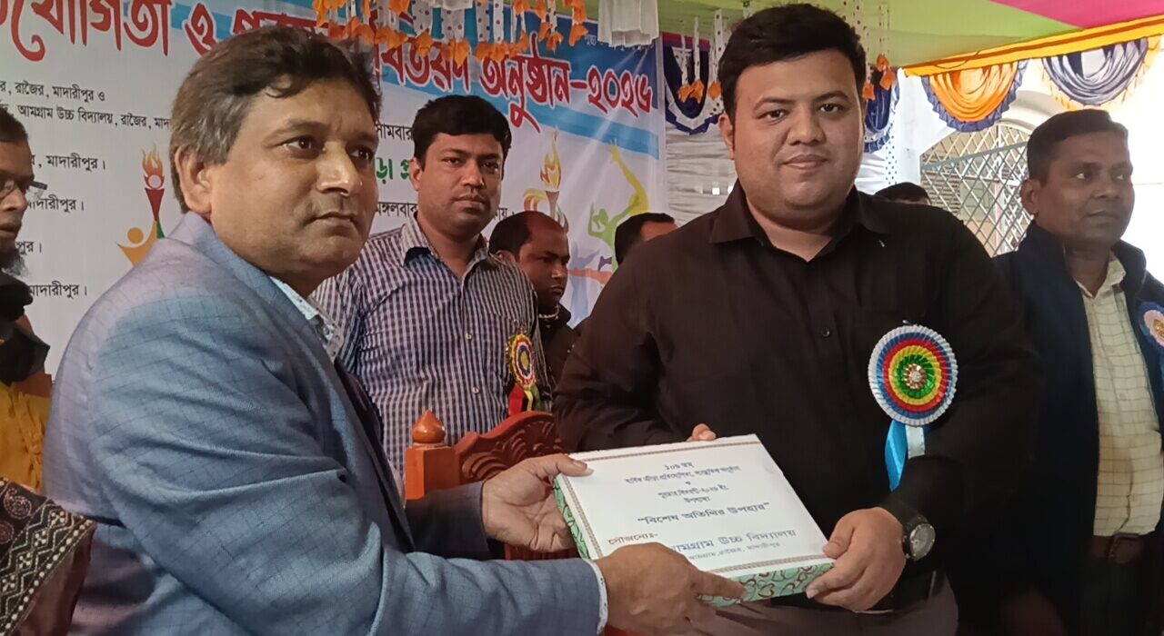 সাব্বির হোসাইন আজিজ, মাদারীপুরঃ মাদারীপুরের রাজৈর উপজেলার আমগ্রাম উচ্চ বিদ্যালয়ের ১০৬তম বার্ষিক ক্রীড়া প্রতিযোগিতা ও সাংস্কৃতিক অনুষ্ঠান উৎসবমুখর পরিবেশে অনুষ্ঠিত হয়েছে। দুই দিনব্যাপী এই আয়োজনে মঙ্গলবার সকাল ১০টা থেকে শুরু অনুষ্ঠিত হয় মনোজ্ঞ সাংস্কৃতিক অনুষ্ঠান। আজ বিকাল ৪টায় অনুষ্ঠিত পুরস্কার বিতরণী অনুষ্ঠানে প্রধান অতিথি হিসেবে বিজয়ীদের হাতে পুরস্কার তুলে দেন রাজৈর উপজেলা সহকারী ভুমি কমিশনার মোঃ নাহিদ নিয়াজ শিশির।