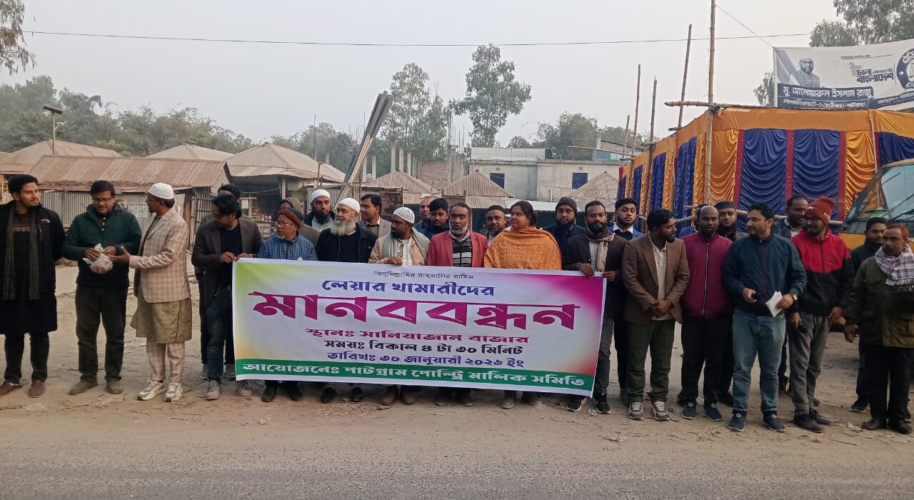 লালমনিরহাটের হাতীবান্ধায় কাজী ফার্মসসহ বিভিন্ন করপোরেট সিন্ডিকেটের প্রতিবাদে এবং ডিমের ন্যায্যমূল্যের দাবিতে লেয়ার খামারিদের উদ্যোগে মানববন্ধন অনুষ্ঠিত হয়েছে।