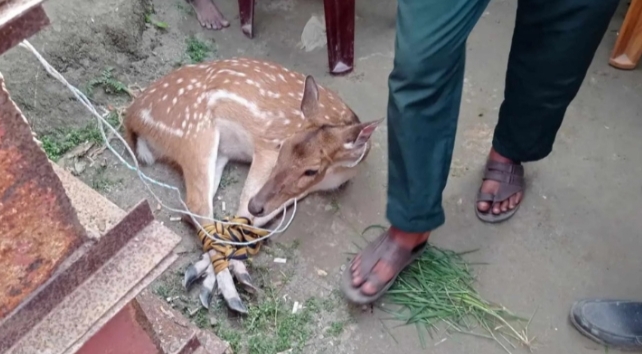 সুন্দরবনের হরিণ পথ হারিয়ে লোকালয়ে