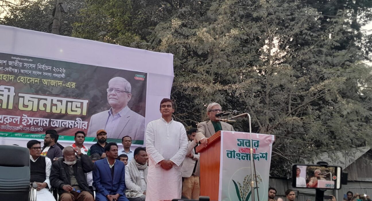 তিনি আরও বলেন, ফরহাদ হোসেন আজাদ দেবীগঞ্জের মানুষের সাথে দিনরাত কাজ করেছেন। আজকে দেশের একটি জটিল মুহূর্তে নির্বাচন হচ্ছে। তারা ২০ হাজার মানুষকে হত্যা করেছে। জুলাইয়ে ২ হাজার যুবককে হত্যা করা হয়েছে। আপনাদের ভোটে নির্বাচনে জয়ী হয়ে সে নির্বাচনের মধ্য দিয়েই আমরা যেন সৃজনশীল সরকার গঠন করতে পারি। শান্তির দেশ নির্মাণ করতে পারি। সে জন্য এ নির্বাচন অত্যন্ত গুরুত্বপূর্ণ। দেশনেত্রী বেগম খালেদা জিয়া মারা যাওয়ার পরেই তিনি নির্বাচনের পথে প্রান্তরে ছুটেছেন। একটি সমৃদ্ধ বাংলাদেশ বিনির্মান করতে চাই। এ দেশে ভালেবাসার সাথে বাস করতে চাই। আজকে এ নির্বাচনে বড় সমস্যা করছে একটি দল। এ দলটি বিশ্বাস যোগ্য নয়। এটি পাকিস্তানিদের স্বাধীনতার সময় বিরোধিতা করেছে। বাংলাদেশের স্বাধীনতার সময়ও বিরোধিতা করেছে। তারা চরমোনাই পীর সাহেবদের সাথে জোট করেছিল। তখন চরমোনাই পীর সাহেব বুঝতে পেরেছিল এদের চেয়ে বড় মিথ্যাবাদী আর কেউ নাই। এটা বুঝতে পেরে তারা জোট থেকে বের হয়ে আসে। চরমোনাই পীর সাহেব বলেছিল এদের ভোট দেয়া হারাম।