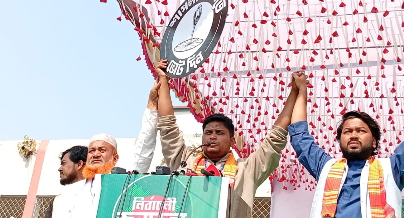 সিরাজগঞ্জ- ৬ (শাহজাদপুর), রোববার (৮ ফেব্রুয়ারী) পাপলা কলি প্রতীকের পক্ষে নির্বাচনীয় প্রচারনার জন্য জনসভার আয়োজন করা হয়। উক্ত জনসভায় প্রধান অতিথি হিসেবে উপস্থিত ছিলেন বাংলাদেশ জামায়াতে ইসলামীর কেন্দ্রীয় সহকারী সেক্রেটারি মাওলানা মোঃ রফিকুল ইসলাম খান, এনসিপি’র কেন্দ্রীয় মুখ্য সংগঠক (দক্ষিণাঞ্চল) হাসনাত আব্দুল্লাহ।
