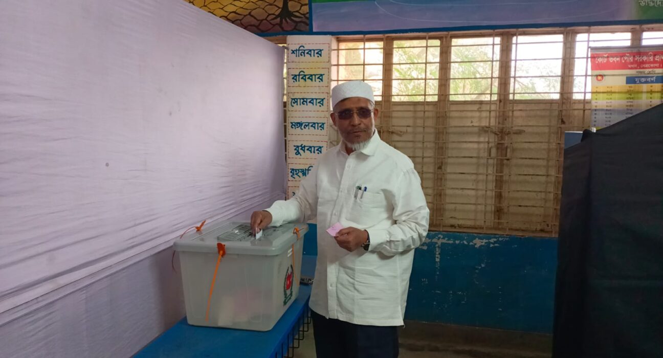 বৃহস্পতিবার(১২ই ফেব্রুয়ারি)সকালে উপজেলার কোর্ট ভবন সরকারি প্রাথমিক বিদ্যালয়ে উপস্থিত হয়ে দীর্ঘক্ষণ লাইনে দাঁড়িয়ে ভোট প্রদান করেন তিনি।