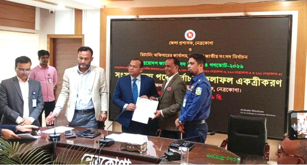নেত্রকোনায় সরকারি ফলাফল গ্রহণ করলেন ব্যারিস্টার কায়সার কামাল