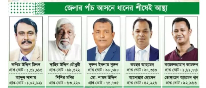 নোয়াখালীর ৫টিতে ধানের শীর্ষ ও ১টিতে এনসিপি’র জয়