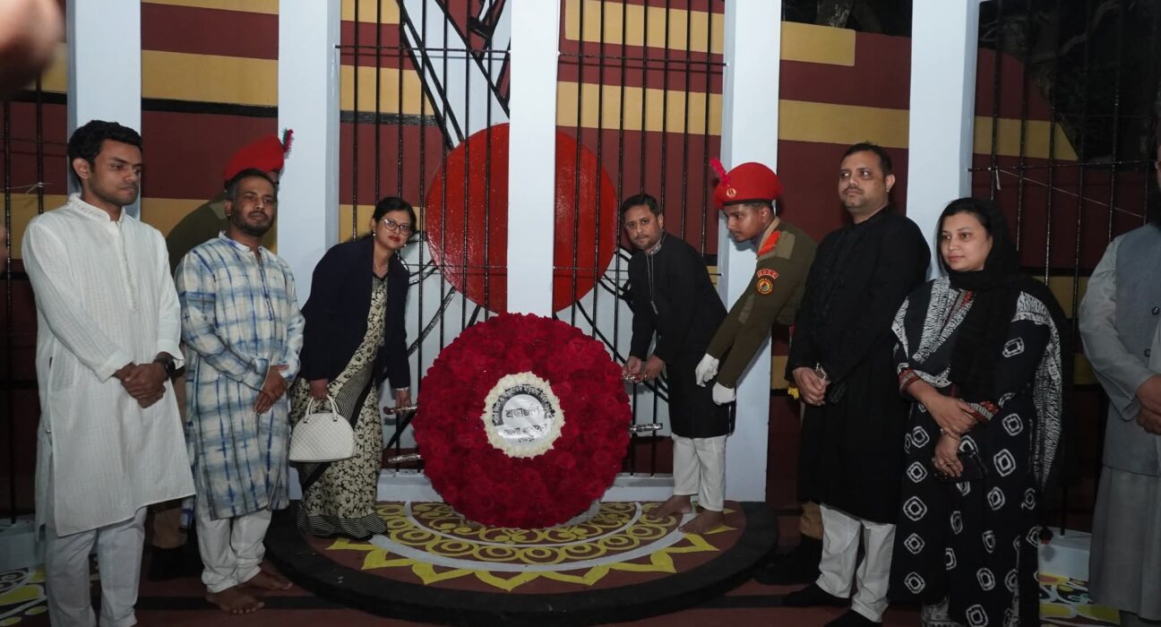 একুশের প্রথম প্রহরে শেরপুর জেলা কেন্দ্রীয় শহিদ মিনারে সর্বস্তরের শ্রদ্ধাঞ্জলি