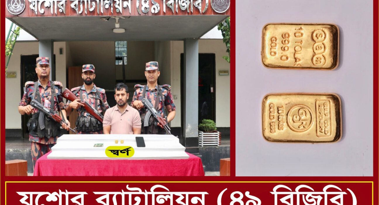 যশোরে বিজিবির অভিযানে ৫৪ লক্ষ ৩০ হাজার টাকা মুল্যের ২ পিস স্বর্ণরবারসহ আটক-১