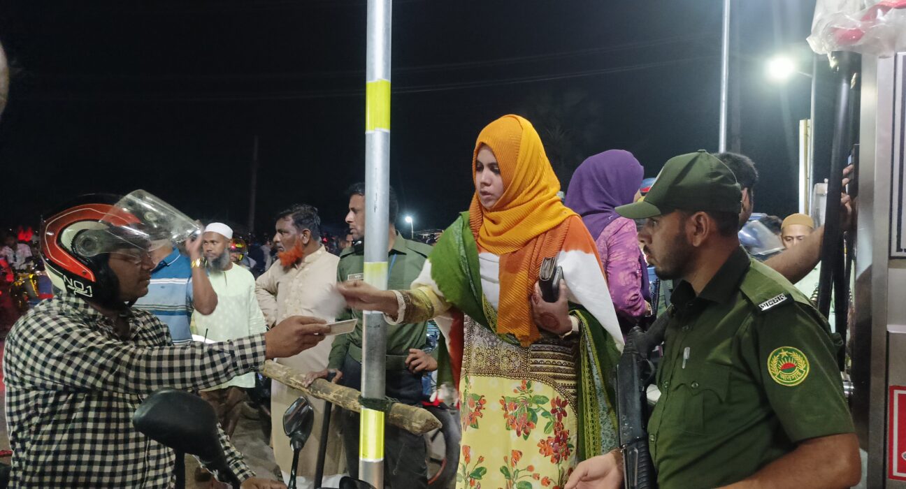 বগুড়ার আদমদীঘির সান্তাহারে আনিকা ফিলিং স্টেশনে গতরাতে নিজে দাঁড়িয়ে থেকে জ্বালানি তেল সরবরাহ নিশ্চিত করেন উপজেলা সহকারী কমিশনার (ভূমি) মাহমুদা সুলতানা।