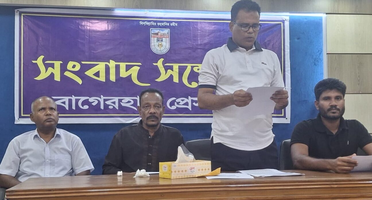 বাগেরহাটে ভবনের সানসেডে নির্মান করার প্রতিবাদ করায় হামলার ঘটনায় সংবাদ সম্মেলন