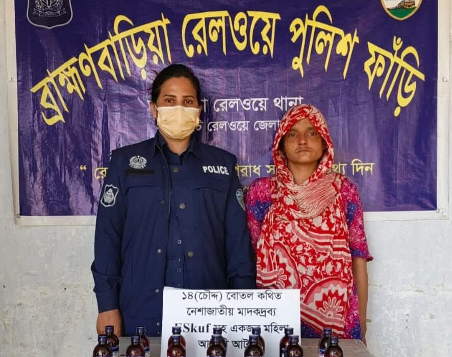 ব্রাহ্মণবাড়িয়া রেলস্টেশন থেকে ১৪ বোতল কথিত ‘এসকাফ’ মাদকদ্রব্যসহ এক নারীকে আটক করেছে রেলওয়ে পুলিশ।