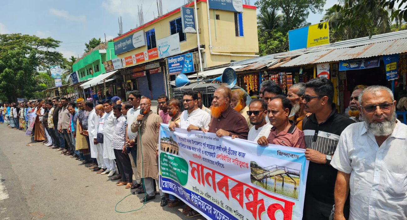 বাগেরহাটে লক্ষ্মীখালী ব্রিজের নির্মাণকাজ শুরুর দাবিতে মানববন্ধন, এলজিইডির প্রকৌশলীকে প্রত্যাহারের দাবি