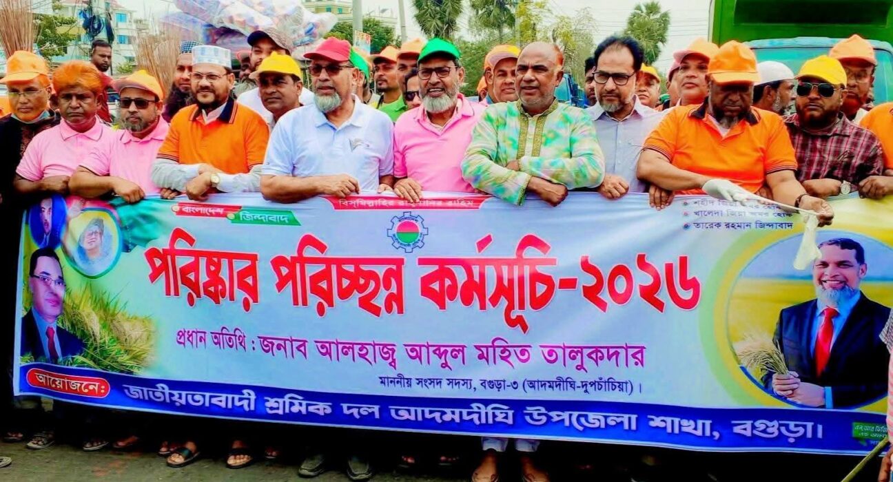 বিএনপি চেয়ারম্যান ও প্রধানমন্ত্রী জনাব তারেক রহমানের নির্দেশনায় বগুড়া জেলার আদমদীঘি উপজেলা শ্রমিক দলের আয়োজনে পরিস্কার পরিচ্ছন্নতা কর্মসূচির শুভ উদ্বোধন করেন বগুড়া-৩ আদমদীঘি দুপচাঁচিয়া আসনের সংসদ সদস্য আলহাজ্ব আব্দুল মোহিত তালুকদার।