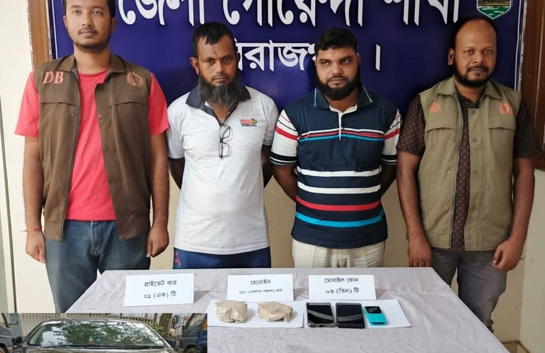 সিরাজগঞ্জে ১৫০ গ্রাম হেরোইন উদ্ধার ও ১ টি প্রাইভেট কারসহ২ জন গ্রেফতার