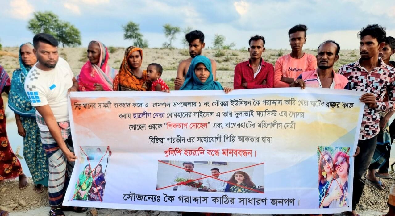 বাগেরহাটের রামপালের কৈগর্দাসকাঠি খেয়াঘাট সংলগ্ন সড়ক নির্মাণে অনিয়ম ও পুলিশি হয়রানির অভিযোগে মানববন্ধন করা হয়েছে।