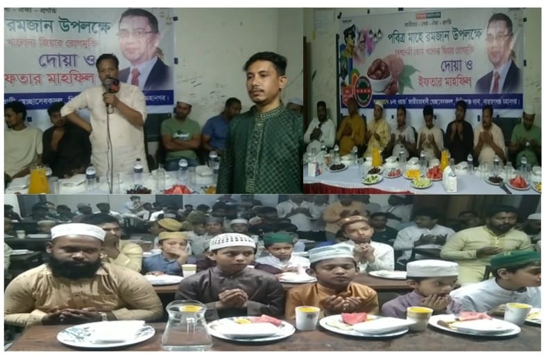পবিত্র মাহে রমজান উপলক্ষ্যে সাবেক তিনবারের প্রধানমন্ত্রী দেশনেত্রী বেগম খালেদা জিয়া’র রোগমুক্তি ও বিএনপির ভারপ্রাপ্ত চেয়ারম্যান তারেক রহমান সুস্বাস্থ্য কামনায় নারায়ণগঞ্জের সিদ্ধিরগঞ্জের ৯নং ওয়ার্ড স্বেচ্ছাসেবক দলের আয়োজনে ইফতার মাহফিল ও দোয়া অনুষ্ঠিত হয়েছে।