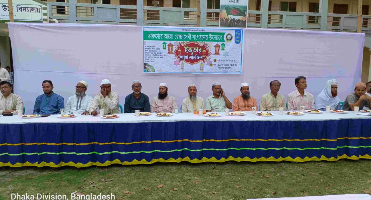 খায়রুল খন্দকার টাঙ্গাইল :টাঙ্গাইলের ভূঞাপুরে তারুণ্যের আলো সেচ্ছাসেবী সংগঠনের উদ্যোগে ইফতার ও দোয়া মাহফিল অনুষ্ঠিত।