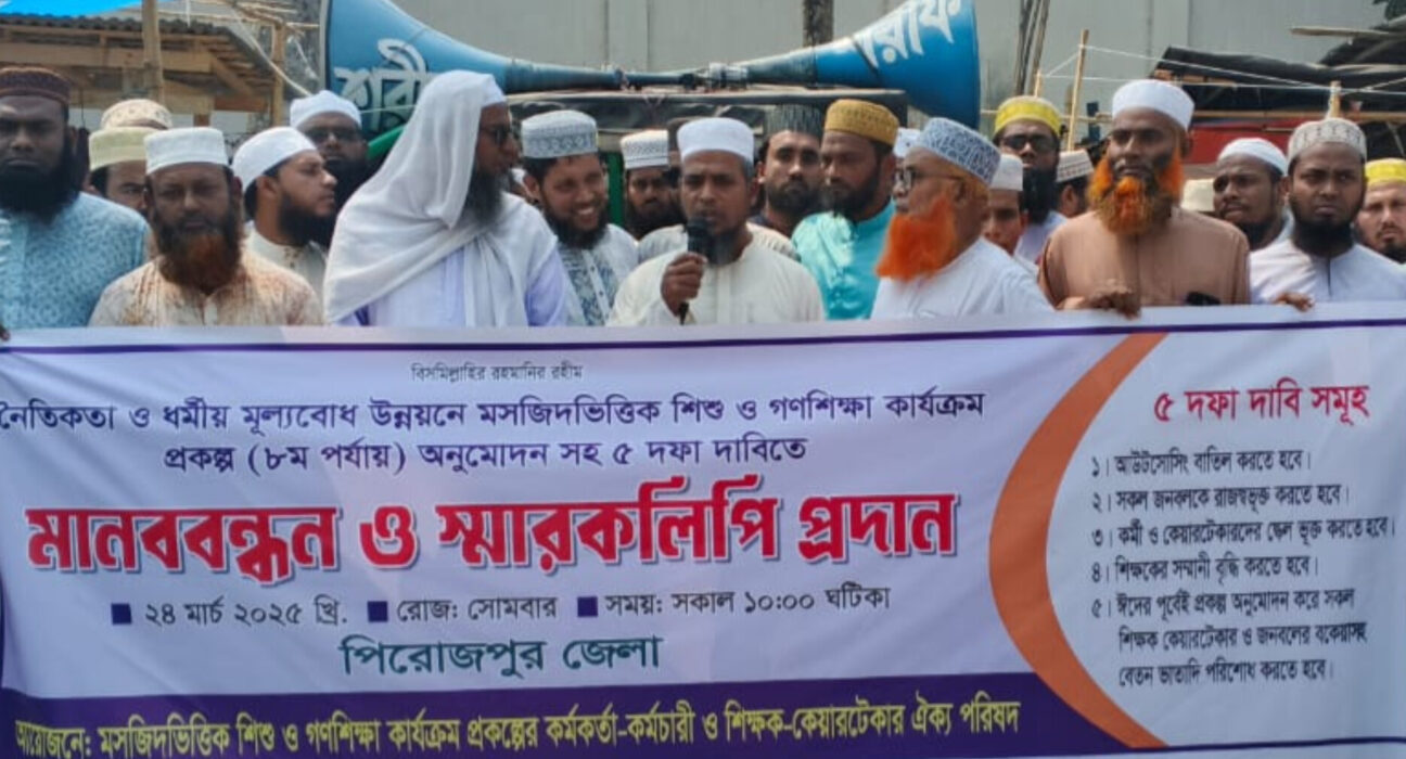 ৫ দফা দাবিতে মসজিদ ভিত্তিক শিশু ও গণশিক্ষা কার্যক্রম প্রকল্পের কর্মকর্তা-কর্মচারীদের মানববন্ধন