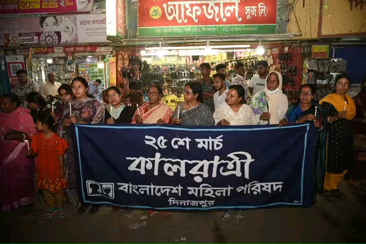 ২৫ মার্চ গণহত্যা দিবস উপলক্ষ্যে বাংলাদেশ মহিলা পরিষদ দিনাজপুর জেলা শাখার আয়োজনে ২৫ মার্চ কালরাত্রি-তে মোমবাতি প্রজ্জ্বলন কর্মসূচী ও আলোচনা সভা অনুষ্ঠিত হয়।