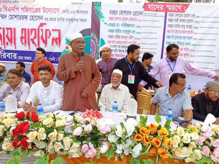 ফেনীর সোনাগাজীতে মোশাররফ হোসেন এমপিসহ প্রয়াত নেতাদের স্মরণে বিএনপির ইফতার মাহফিল।