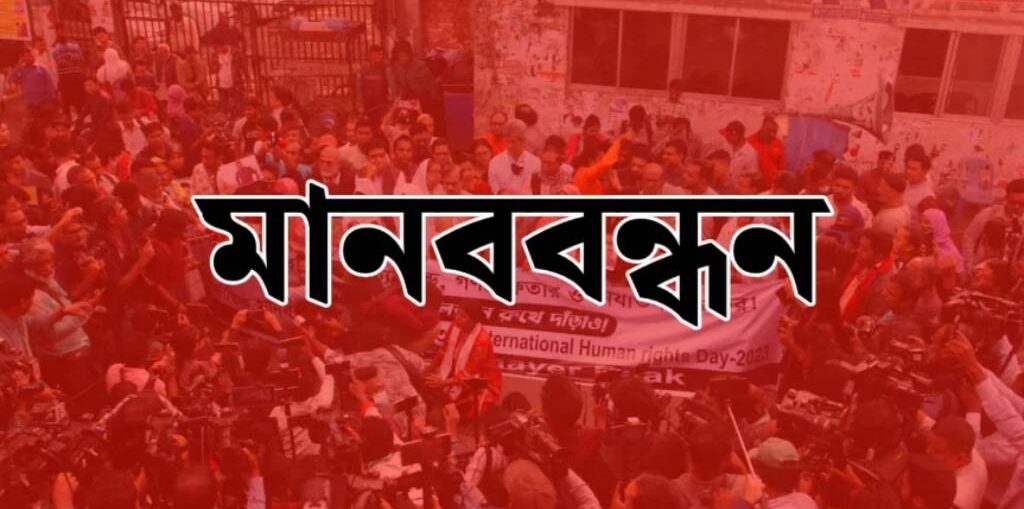 মানিকগঞ্জে মামলার আসামিদের গ্রেফতার দাবিতে মানববন্ধন