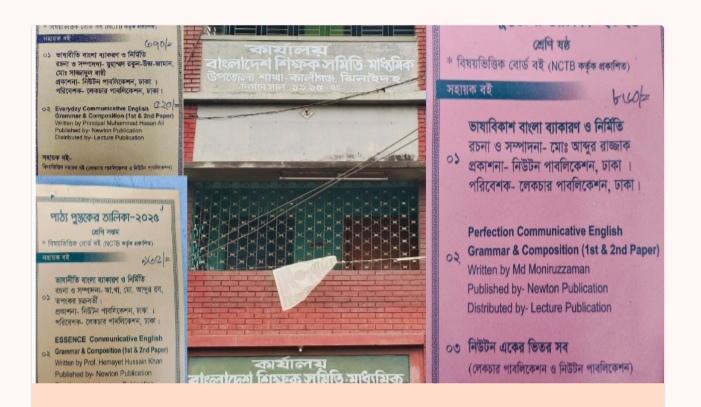 ঝিনাইদহের কালীগঞ্জে মাধ্যমিক শিক্ষার্থীদের হাতে শতভাগ সরকার প্রদত্ত বিনামূল্যের পাঠ্যবই না পৌঁছালেও স্কুলে স্কুলে পৌঁছে গেছে লেকচার পাবলিকেশন্স কোম্পানী কর্তৃক প্রদত্ত নোট গাইড বইয়ের তালিকা। শিক্ষার্থীদের হাতে অবৈধ নোট গাইডের এই তালিকা তুলে দেওয়ার কাজটি করছে অনিবন্ধিত কথিত নামধারী মাধ্যমিক শিক্ষক সমিতি ও স্ব স্ব প্রতিষ্ঠানের শিক্ষকরা । গত ক বছর ধরে এ সমিতি বই কোম্পানীর নিকট থেকে মোটা অংকের টাকা নিয়ে নিজেদের মধ্যে ভাগবাটোরা, ভুড়িভোজ ও বার্ষিক বনভোজন করে আসছে। চলতি বছর মাধ্যমিক শিক্ষক সমিতির সভাপতি (ভারপ্রাপ্ত) মান্দারবাড়িয়া চাঁদপাড়া মাধ্যমিক বিদ্যালয়ের প্রধান শিক্ষক কামরুজ্জামান কামাল ও সাধারণ সম্পাদক চাচড়া মাধ্যমিক বিদ্যালয়ের সহকারী প্রধান শিক্ষক হারুন অর রশিদ বই কোম্পানীর নিকট থেকে মোটা অংকের টাকা গ্রহণের জন্য ৪ সদস্যের একটি যাচাই-বাছাই কমিটি গঠন করেন। এই চার জন সদস্য হলেন- মোবারক আলী মাধ্যমিক বিদ্যালয়ের লাইব্রেরিয়ান তরিকুল ইসলাম, রায়গ্রাম বাণীকান্ত মাধ্যমিক বিদ্যালয়ের লাইব্রেরিয়ান পলাশ মুখার্জী, সুন্দরপুর মাধ্যমিক বিদ্যালয়ের প্রধান শিক্ষক মোস্তাফিজুর রহমান ও বিএইচএ বি মুন্দিয়া মাধ্যমিক বিদ্যালয়ের সহকারী শিক্ষক মহসিন আলী।এই কমিটির সিদ্ধান্ত অনুযায়ী লেকচার পাবলিকেশন্স লিমিটেড কোম্পানির নোট গাইড এ বছর বিদ্যালয়সমূহে চালানোর সিদ্ধান্ত গৃহীত হয়।বর্তমান সরকার ষষ্ঠ থেকে দশম শ্রেণী পর্যন্ত বিনামূল্যে শিক্ষার্থীদের হাতে বই পৌঁছে দিচ্ছে। প্রতিটি শ্রেণীর বাংলা ব্যাকরণ এবং ইংরেজী গ্রামার বইও বিনামূল্যে প্রদান করা হয়েছে। অথচ লেকচার কোম্পানীর বাংলা ব্যাকরণ ও ইংরেজী ব্যাকরণ এবং সহায়ক বইয়ের নামে নিষিদ্ধ নোট গাইড শিক্ষার্থীদের কেনার জন্য বিভিন্ন শিক্ষা প্রতিষ্ঠানে লেকচার পাবলিকেশন্স কোম্পানীর প্রতিনিধি এবং শিক্ষকদের সহায়তায় শ্রেণিকক্ষে গিয়ে শিক্ষার্থীদের হাতে ধরিয়ে দেওয়া হচ্ছে বইয়ের তালিকা। এখনো পর্যন্ত সরকারি বিনামূল্যের বই পরিপূর্ণরূপে শিক্ষার্থীদের হাতে পৌঁছায়নি। অথচ চড়া মূল্যের অবৈধ নোট গাইড শিক্ষার্থীদের কেনানোর জন্য মরিয়া হয়ে উঠেছে সমিতিভুক্ত শিক্ষকরা। আর ওই তালিকা ধরে বই কিনতে লাইব্রেরীগুলোতে ছুটছেন অভিভাবকরা। এতে চরম ক্ষোভ প্রকাশ করছেন তারা।খোজ নিয়ে জানা যায়, শিক্ষক সমিতির সহায়তায় হাট বারোবাজার, বিএইচএবি মুন্দিয়া, একতারপুর, চাপরাইল, এবং বালিয়াডাঙ্গা মাধ্যমিক বিদ্যালয়ে বিভিন্ন শ্রেণিকক্ষে শিক্ষার্থীদের মাঝে বইয়ের তালিকা ইতিমধ্যে প্রদান করা হয়েছে। পর্যায়ক্রমে বাকি স্কুলগুলোতেও করা হবে বলে জানা যায়। আর এসব দেখভাল করার দায়িত্বে থাকা উপজেলা 