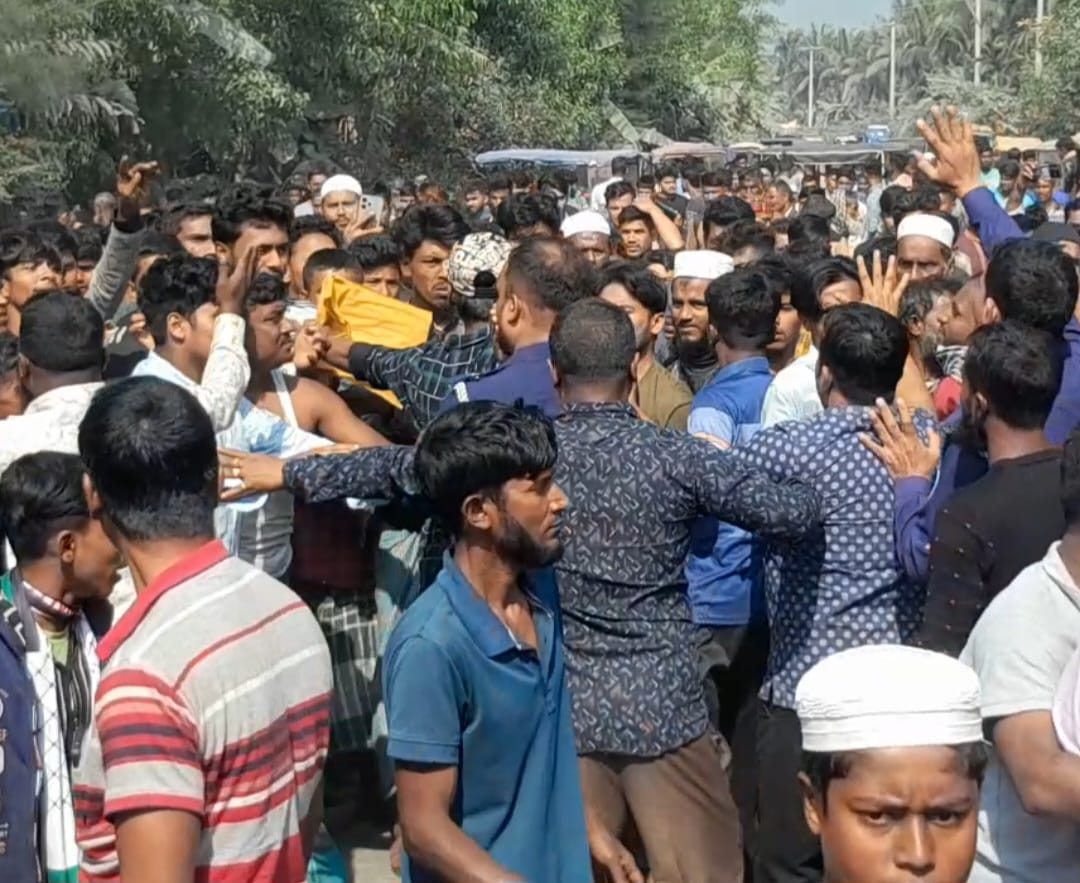 যশোরের অভয়নগর উপজেলায় তরিকুল ইসলাম হত্যা ও সংখ্যালঘু হিন্দুদের ১৮-২০ বাড়িতে লুটপাট, ভাংচুর এবং বিভিন্ন প্রতিষ্ঠানের হামলার প্রতিবাদে মানববন্ধন করেছে \”বাংলাদেশ জাতীয় হিন্দু ছাত্র মহাজোট\”। আজ সোমবার (২৬ মে) সকাল
