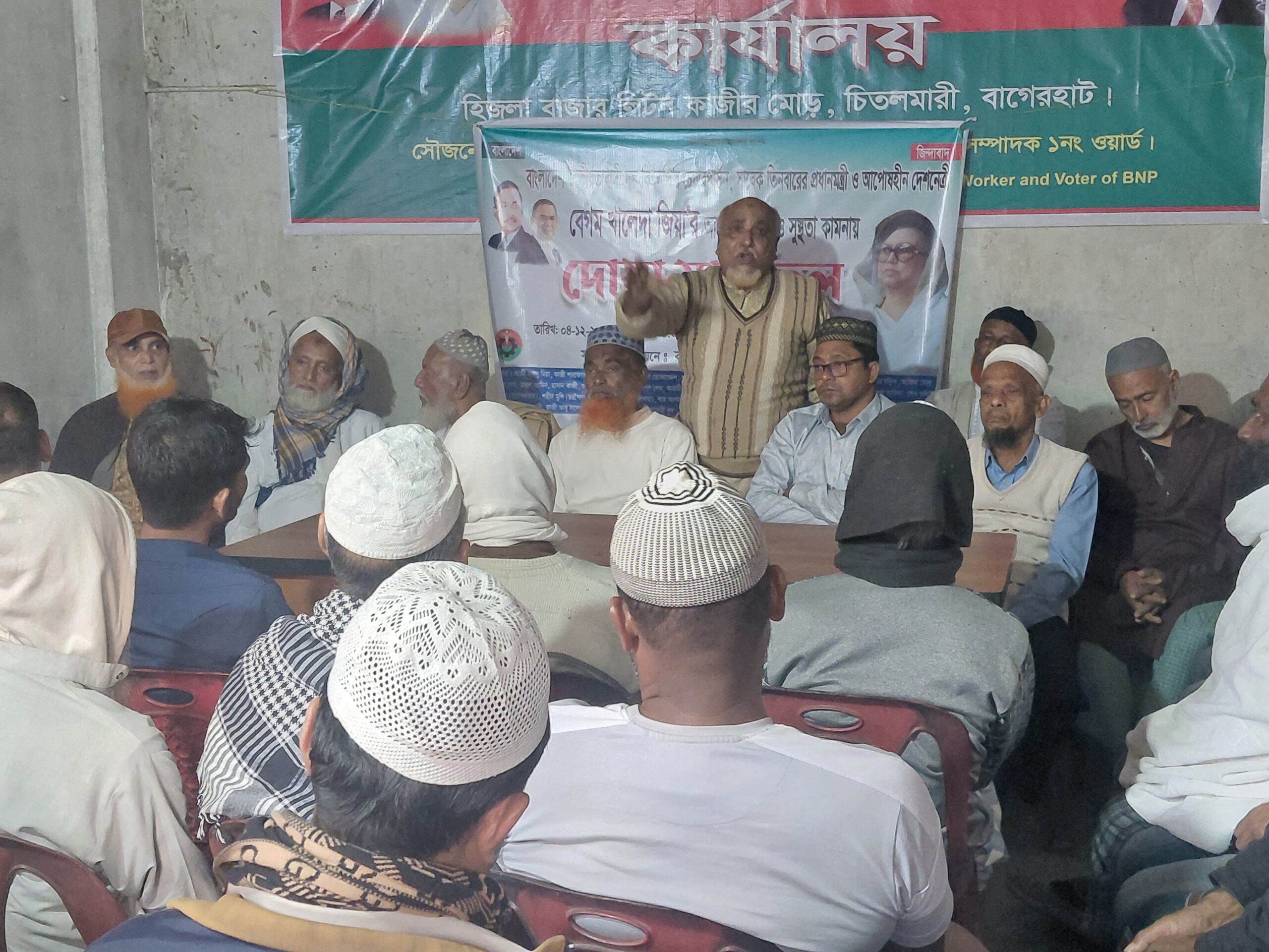 উজ্জ্বল কুমার দাস (বাগেরহাট) জেলা প্রতিনিধি।। বাগেরহাটের চিতলমারী উপজেলার হিজলা ইউনিয়নে তিনবারের সাবেক প্রধানমন্ত্রী দেশনেত্রী বেগম খালেদা জিয়ার রোগ মুক্তি ও সুস্থতা কামনায় দোয়া মাহফিল অনুষ্ঠিত হয়েছে। ৪ ডিসেম্বর বিকাল