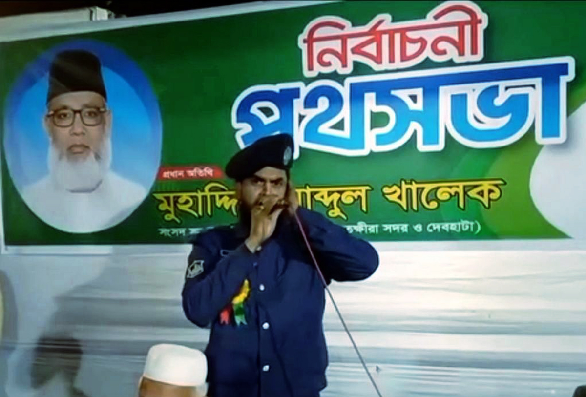 মোঃ খলিলুর রহমান,সাতক্ষীরা :: সাতক্ষীরায় জামায়াত প্রার্থীর নির্বাচনী পথসভায় পুলিশের পোশাক পরে অংশগ্রহণ এবং ইসলামী সংগীত পরিবেশনের অভিযোগে এএসআই (সশস্ত্র) মহিবুল্লাহকে সাময়িক বরখাস্ত করেছে পুলিশ। ঘটনাটি ঘটে ৭ ডিসেম্বর রাতে,